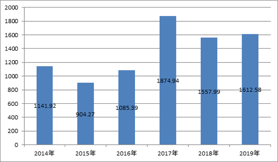 圖1 2014-2019年第三季度拍賣成交額(é)對(duì)比表