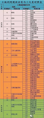 《中華人民共和國土地管理法》與《土地利用現狀分類》中類别的對(duì)照關(guān)系: